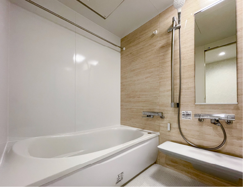 壁や浴槽からカウンターを離すことで、掃除しにくかったカウンターの奥まで手が届くようになりました。