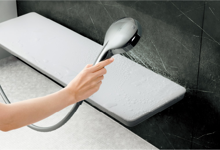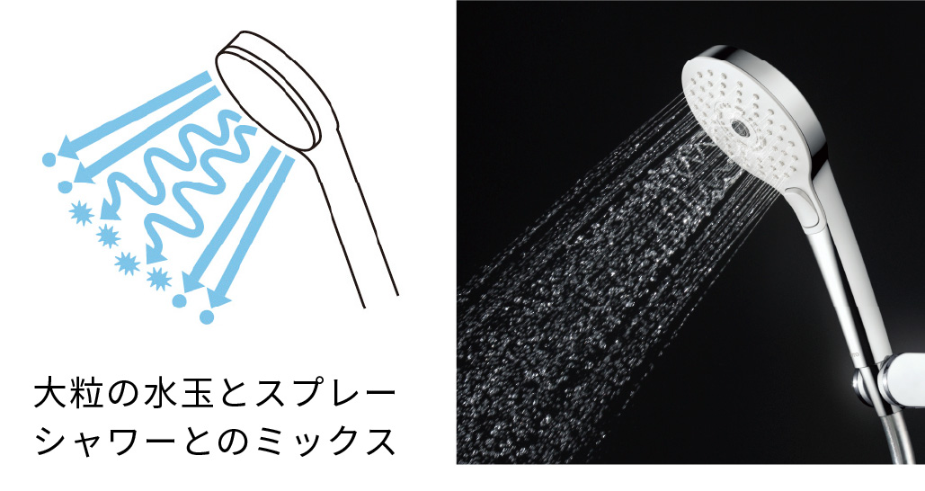 ウエーブ&スプレー2つの水流で、軽快な刺激のある浴び心地。メーカー比35%の節水効果も実現しました。